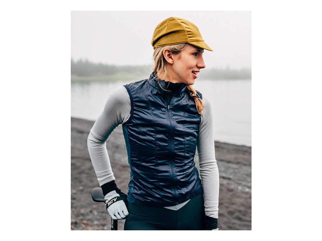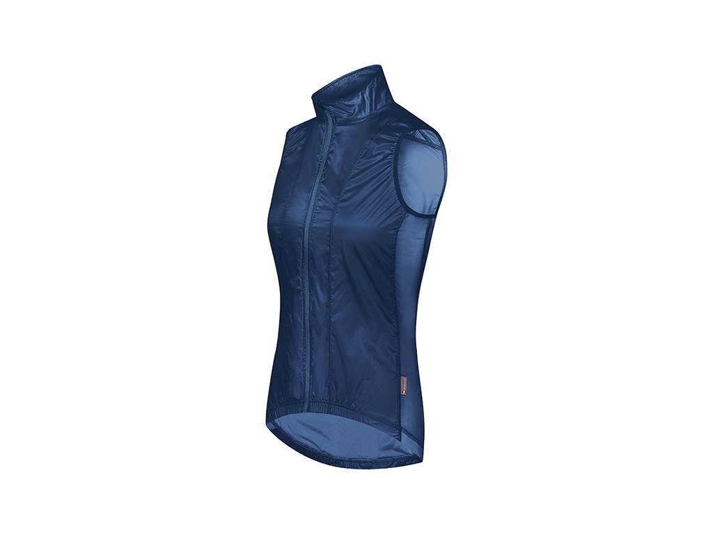Cyklistická vesta závodního střihu má plný zip, elastický pas pro větší stabilitu a otvor pro snadný přístup k kapsám v dresu.
