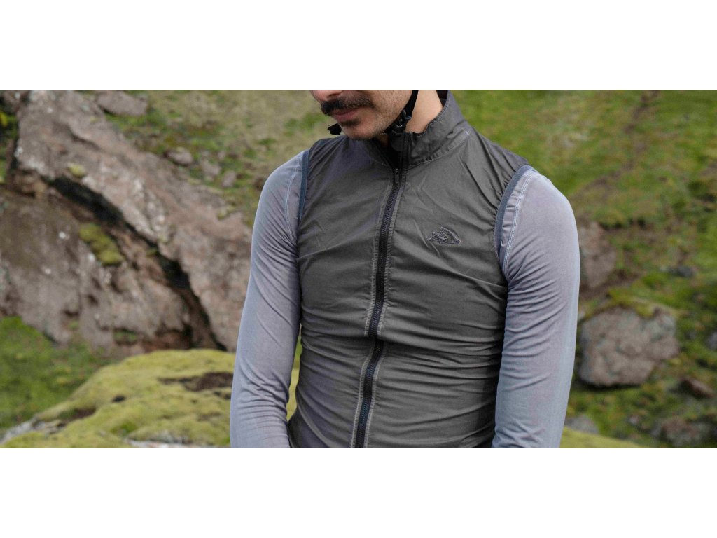 Pánská cyklistická větru odolná vesta EDITH Cold Dye Charcoal Studeně barvené dřevěné uhlí