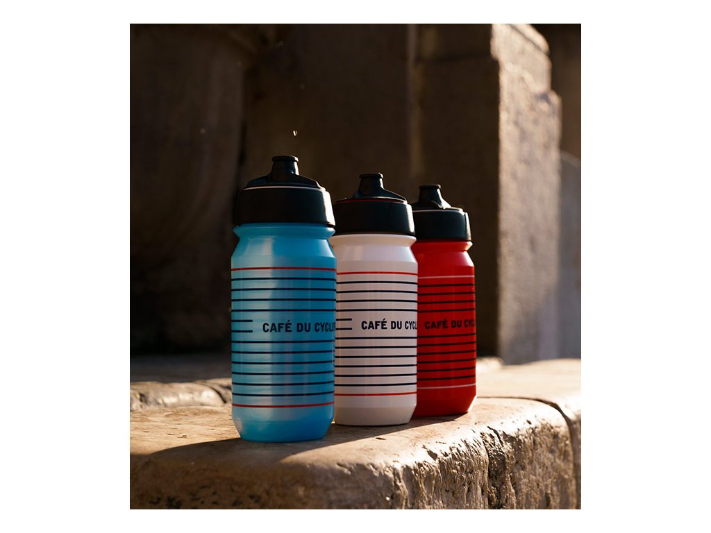 Praktický a elegantní 500ml bidon s nápisem Café du Cycliste. Membránové víčko lze otevřít nebo zavřít jedním pohybem. V otevřené poloze je láhev vždy připravena k použití - zmáčknutím těla bidonu získáte správné množství vody.