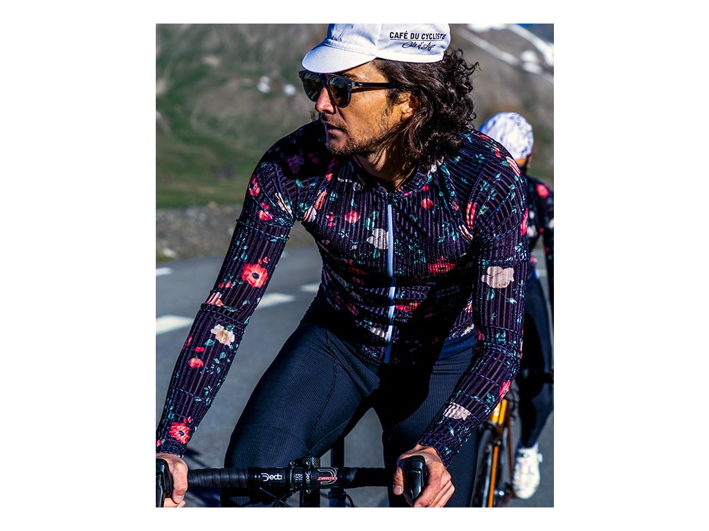 Pánský cyklistický dres na kolo CAFÉ DU CYCLISTE, Dres OCTAVIA ATELIER Flower bílá a modrá - LIMITOVANÁ EDICE