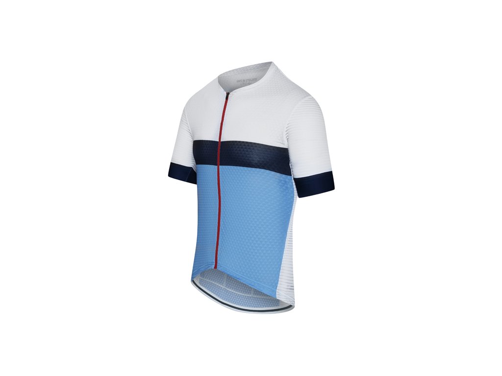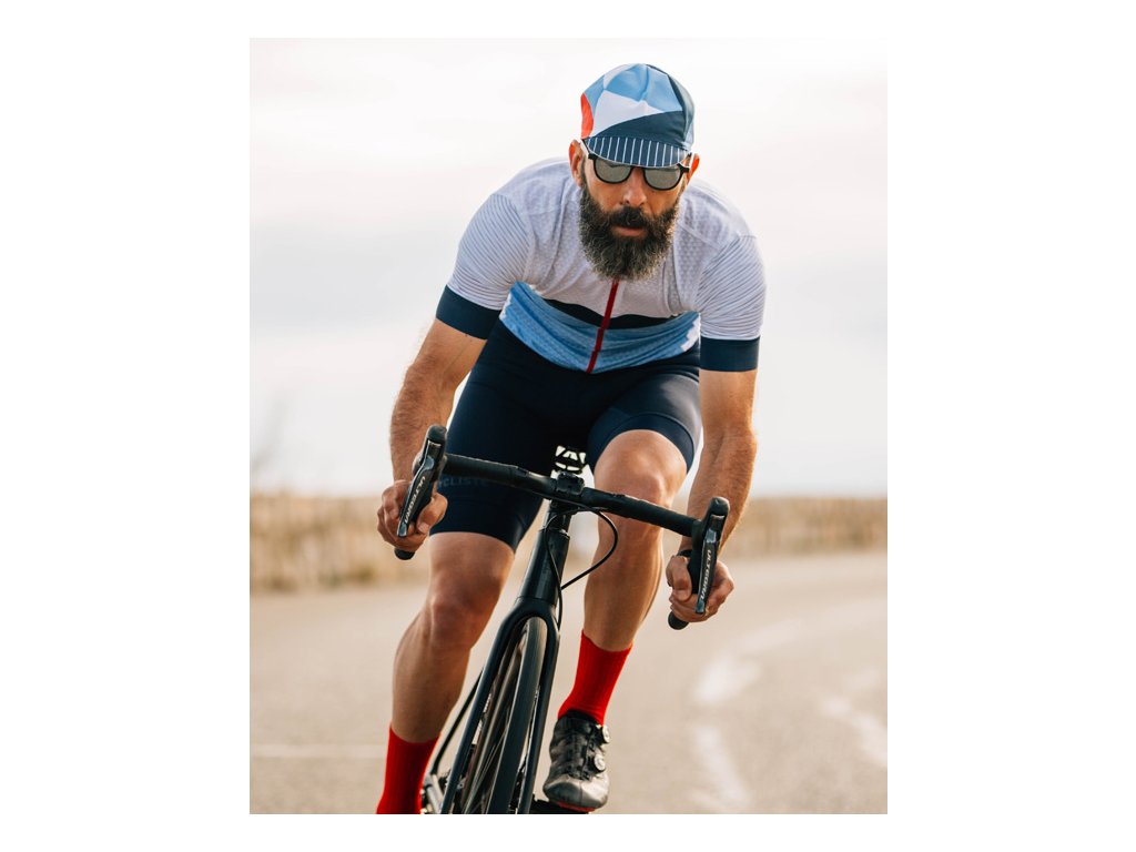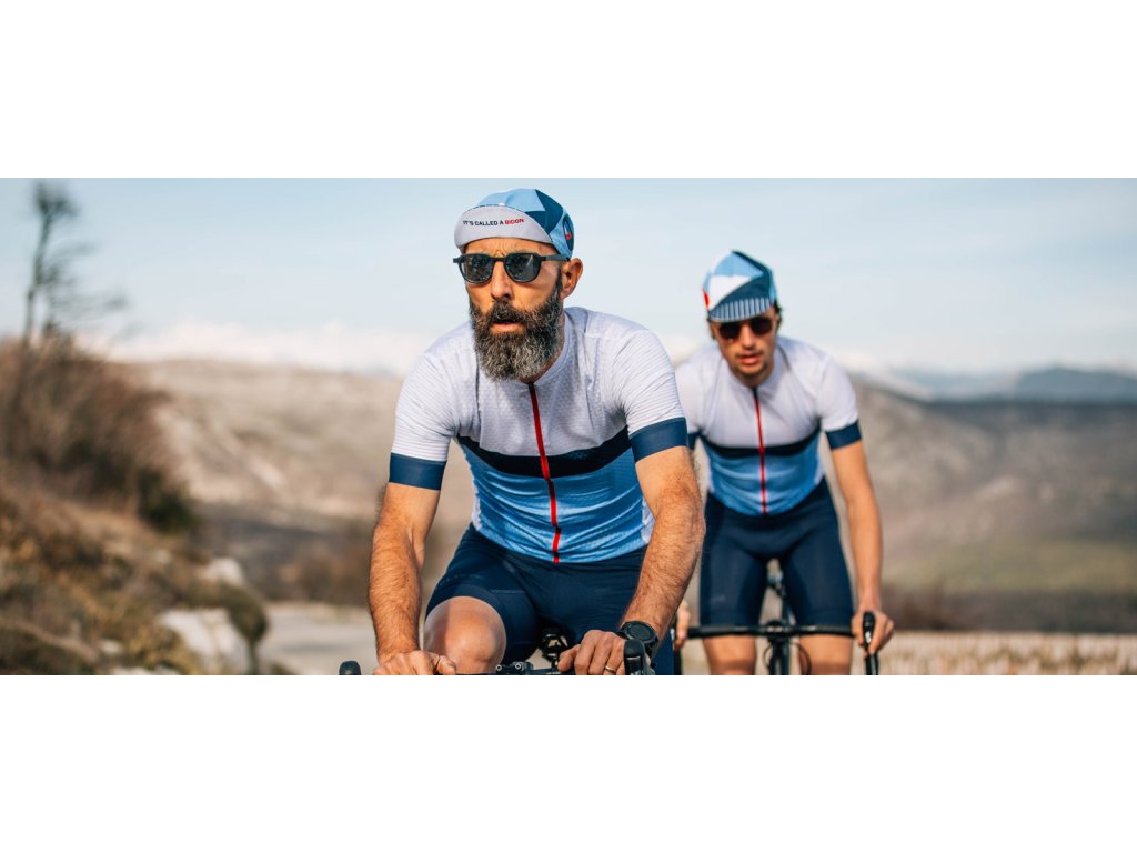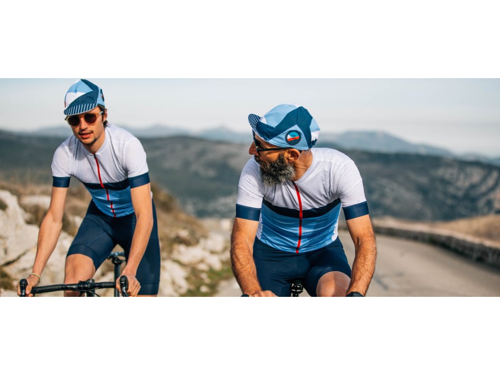 Silniční cyklistické oblečení, které se táhne přes technické dresy, prémiové laclové kraťasy, ochranné vrstvy a celou řadu doplňků. Vše obsesivně navrženo na Azurovém pobřeží.