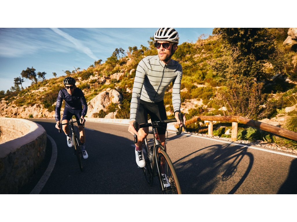 Silniční cyklistické oblečení, které se táhne přes technické dresy, prémiové laclové kraťasy, ochranné vrstvy a celou řadu doplňků. Vše obsesivně navrženo na Azurovém pobřeží.