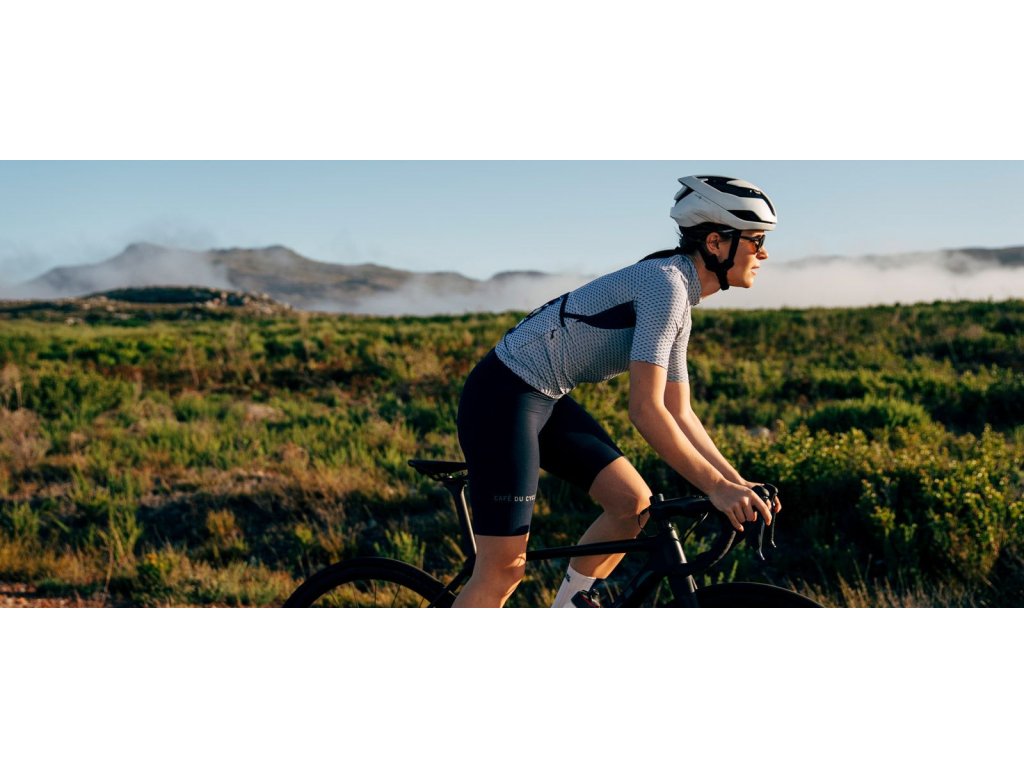 Silniční cyklistické oblečení, které se táhne přes technické dresy, prémiové laclové kraťasy, ochranné vrstvy a celou řadu doplňků. Vše obsesivně navrženo na Azurovém pobřeží.