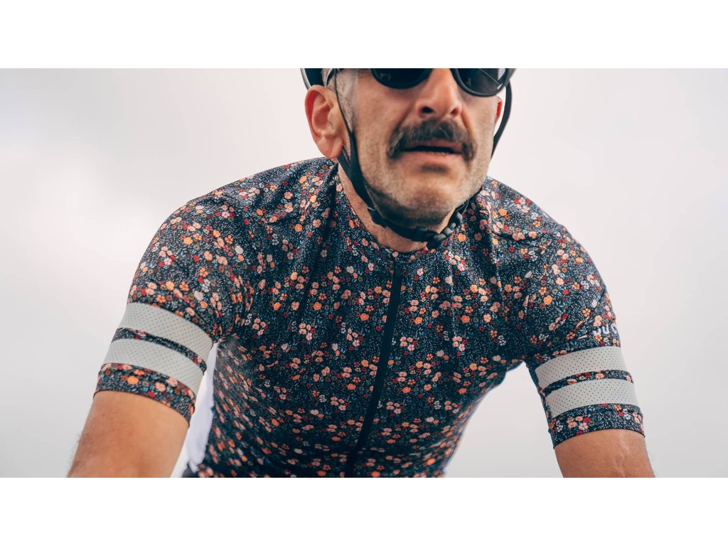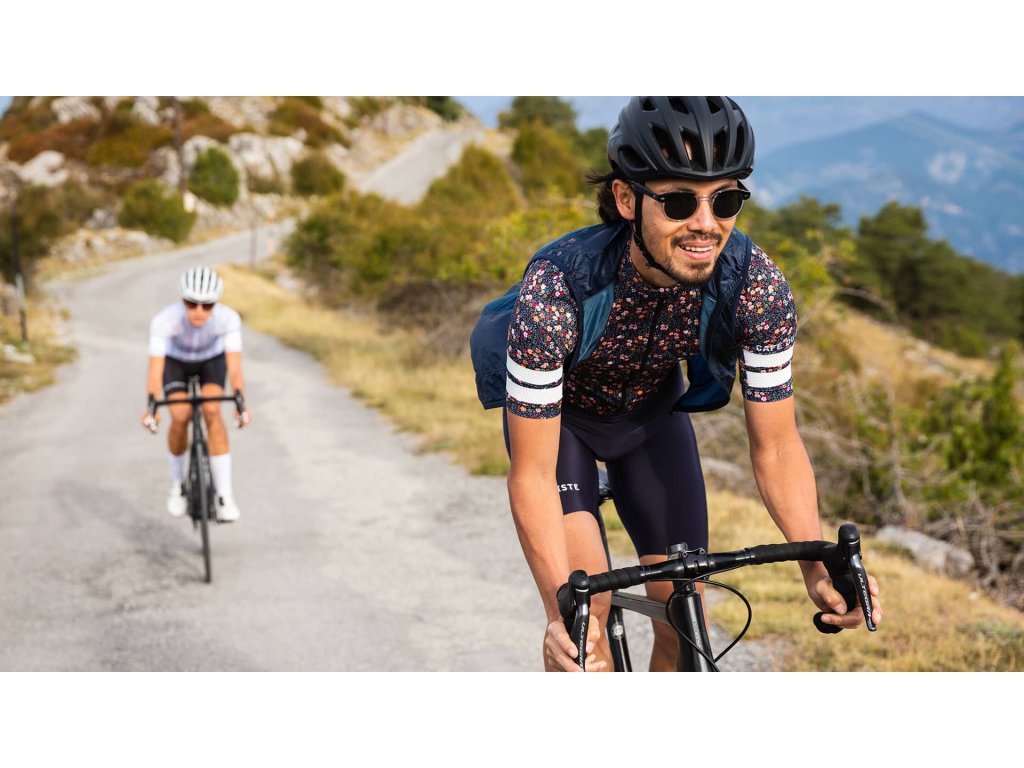 Silniční cyklistické oblečení, které se táhne přes technické dresy, prémiové laclové kraťasy, ochranné vrstvy a celou řadu doplňků. Vše obsesivně navrženo na Azurovém pobřeží.