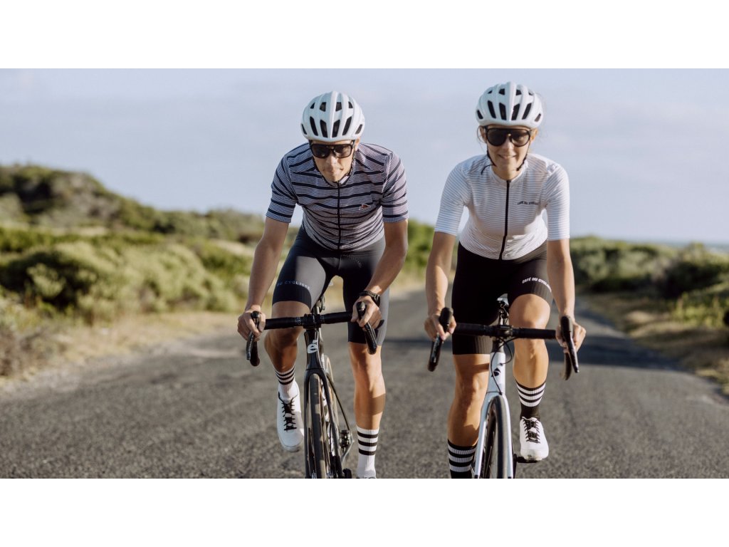 Silniční cyklistické oblečení, které se táhne přes technické dresy, prémiové laclové kraťasy, ochranné vrstvy a celou řadu doplňků. Vše obsesivně navrženo na Azurovém pobřeží.