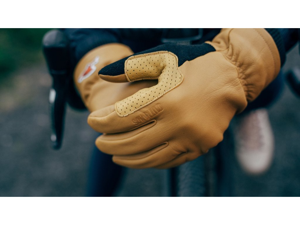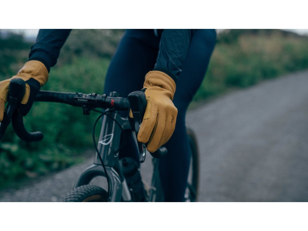 Cyklistické rukavice kožené podzim/jaro série GRAVEL V2 Mustard Hořčice