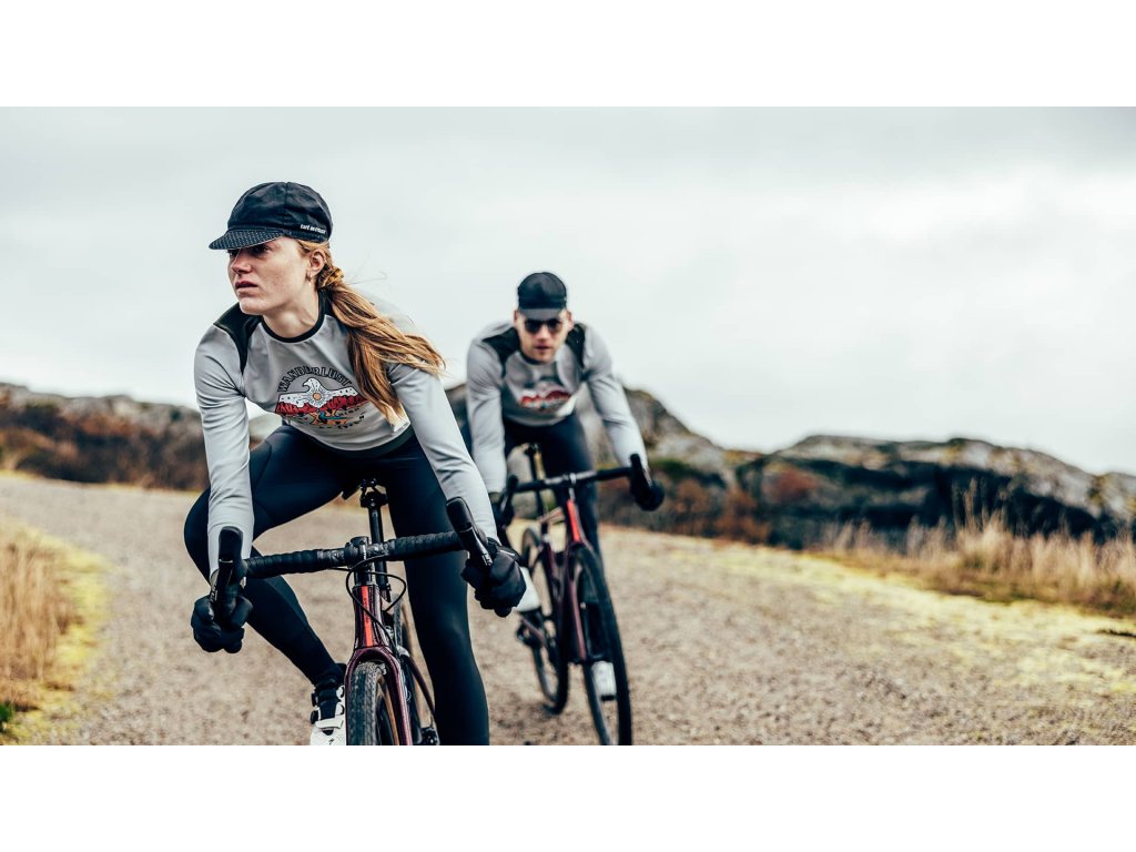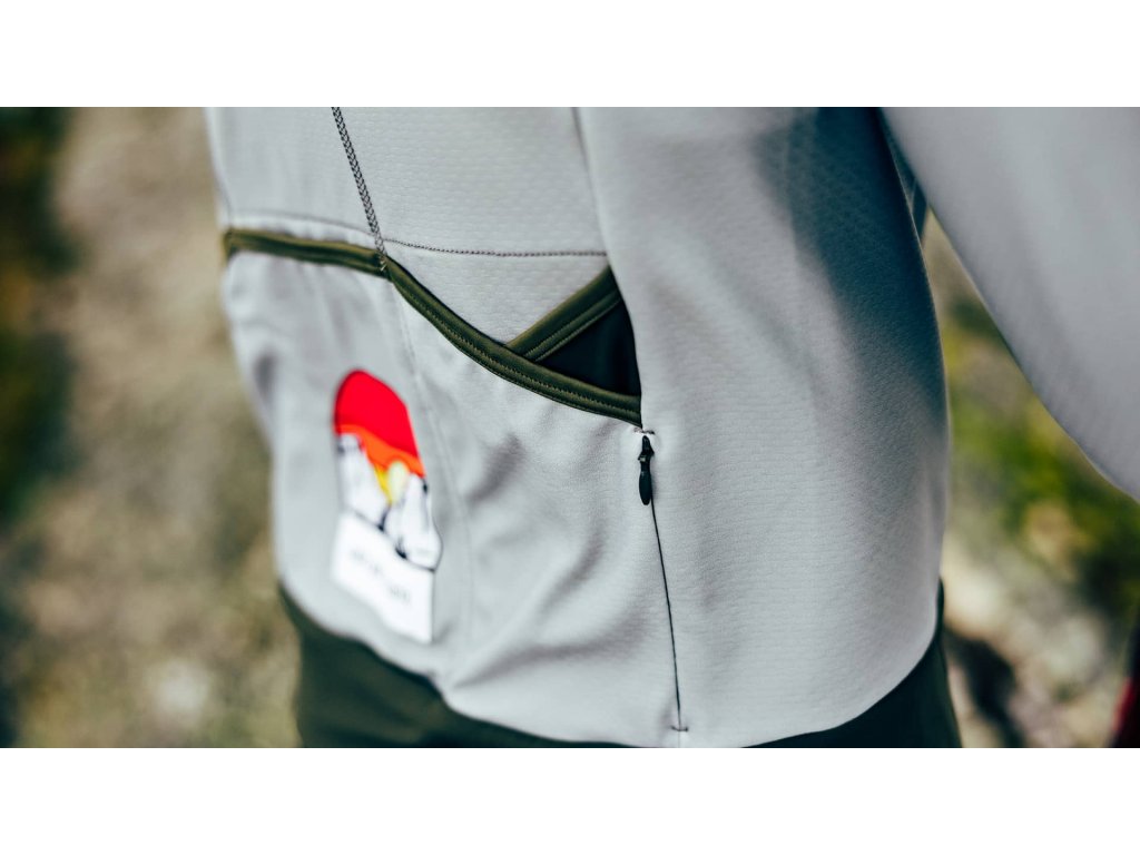 Štěrkový dres, vyrobený z vysoce savých a prodyšných tkanin, dodává extra teplo v chladnějších dnech a zároveň zajišťuje vynikající přenos vlhkosti a regulaci teploty těla, když se dostane do drsných podmínek. Dres má tři kapsy uspořádané do jedinečné pětidílné konfigurace a obsahuje skvělé venkovní motivy a odznak Cafe du Cycliste Atelier.